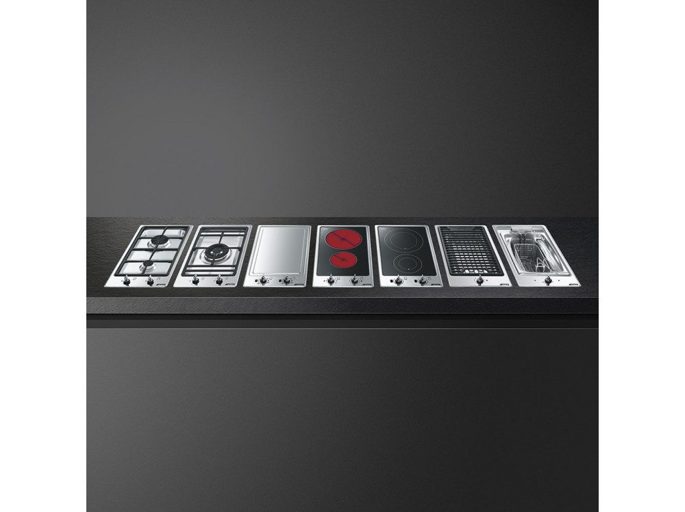 Варочная панель электрическая Smeg PGF32I-1 - настолько многофункциональна, что подойдет для припускания, тушения и жарки овощей, мяса, рыбы и других продуктов. Оборудование относится к серии Classica. В комплект входят скребок и ручки серии Linea и Classica.