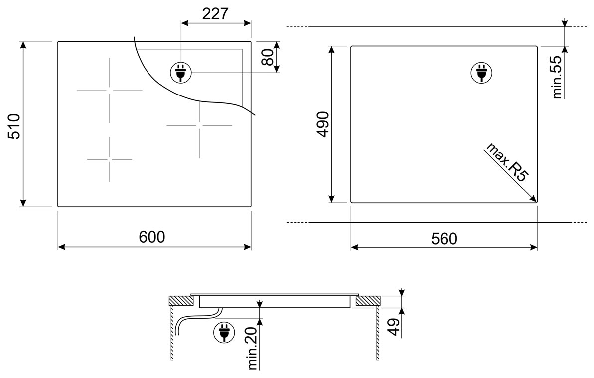 2 индукционные зон нагрева Multizone :
