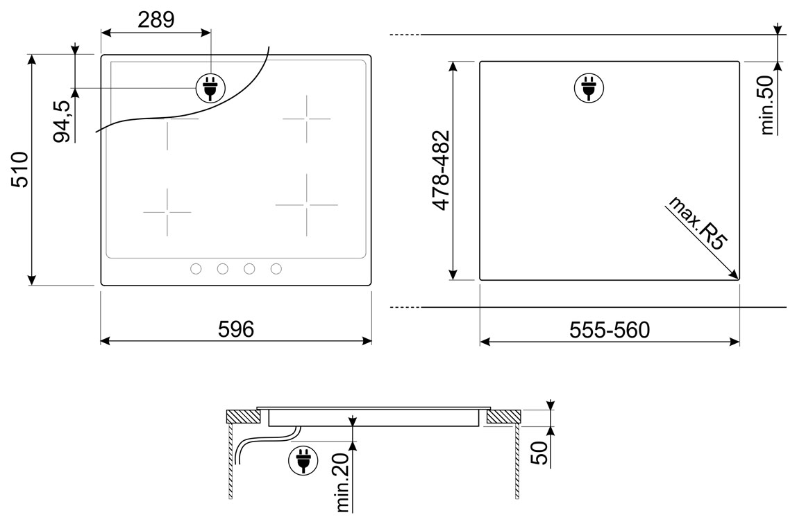 4 индукционные зоны нагрева