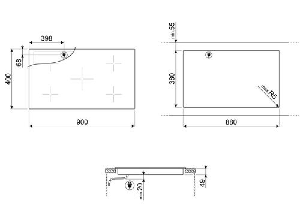 Варочная панель электрическая Smeg SIH7933B - практичная и эффектная. Она выполнена из стеклокерамики черного цвета, имеет оригинальный внешний вид и нестандартное расположение индукционных зон нагрева, за счет чего ее размеры достаточно компактны.