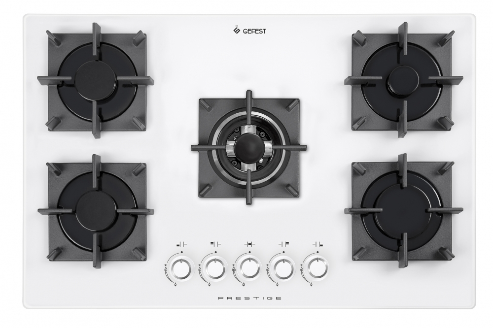 Варочная панель газовая Gefest СГ СН 2340 К32 оснащена пятью конфорками: четырьмя одноконтурными и одной трехконтурной. Они накрыты чугунными решетками, которые не гнутся под весом посуды. В поворотные переключатели встроен автоматический электроподжиг, за счет которого отпадает необходимость пользоваться спичками.