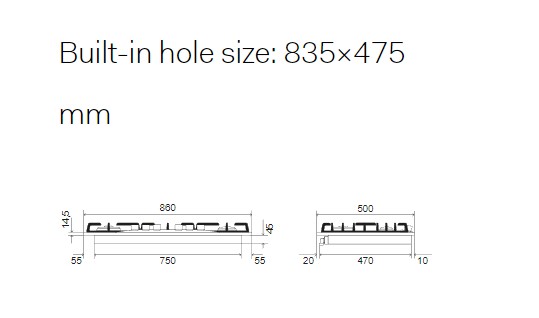 • Большая конфорка Ø 90 мм 2 x 3 кВт / 0,6 кВт