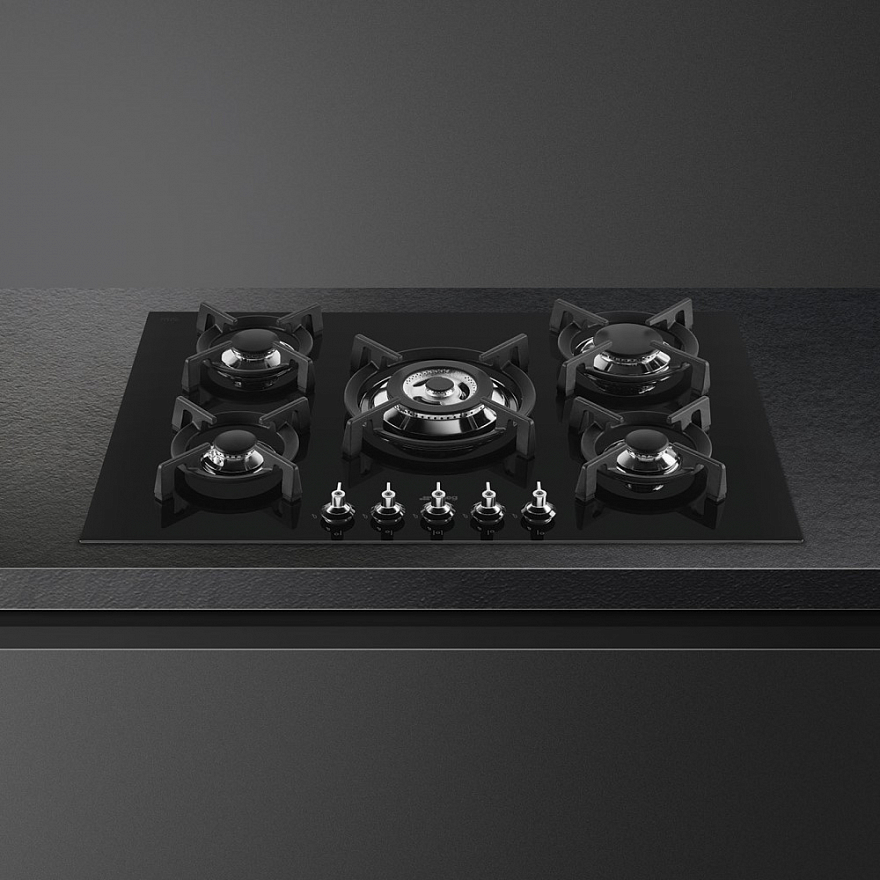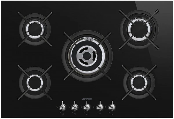 Варочная панель газовая Smeg PV375CN выполнена из стеклокерамики. Поворотные переключатели делают управление быстрым и простым. Модель имеет 5 конфорки, одна из которых имеет WOK подставку. Прибор имеет составные чугунные решётки. Так же поверхность снабжена автоматическим электроподжигом, встроенным в поворотную ручку.