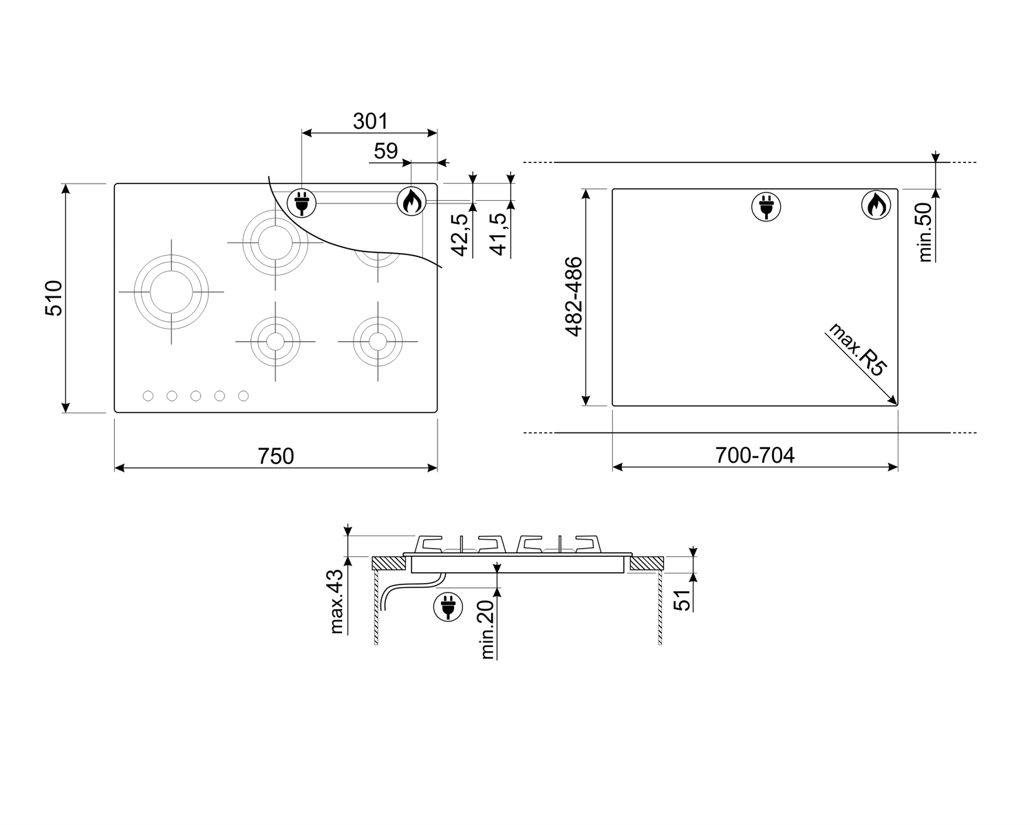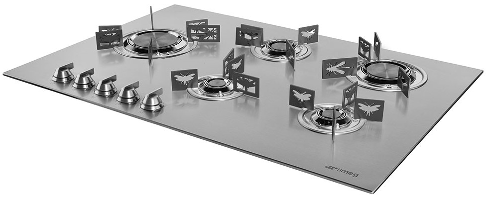 Оборудована 5 конфорками. Одна из них — повышенной мощности. Горелки сделаны по технологии ламинарного вертикального пламени Bladе, что позволяет избежать рассеивания тепла в стороны. При прекращении горения газ будет перекрыт.