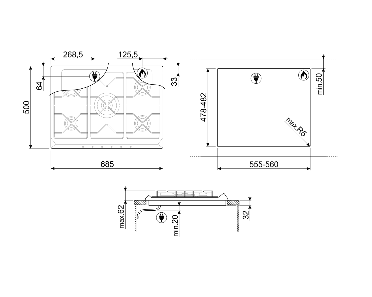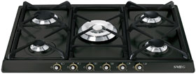 Варочная панель газовая Smeg SR775AO пятиконфорочная варочная поверхность из серии Cortina. Поворотные переключатели цвета латуни позволяют с легкостью разжечь необходимую горелку — использование спичек или зажигалки не требуется. Газ-контроль предотвращает возможность утечки в случае внезапного затухания пламени. Такое может произойти, как от сквозняка, так и при заливе конфорки во время приготовления. Специальный датчик обнаруживает отсутствие огня и через несколько секунд происходит автоматическая блокировка подачи