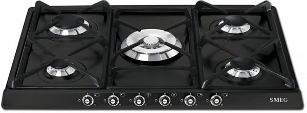 Варочная панель газовая Smeg SR775AS антрацитовая варочная поверхность из коллекции Cortina. Модель дополнена прочными и простыми в уходе решетками из чугуна, а также изящной фурнитурой в цвете состаренного серебра. Для удобства при активации конфорок предусмотрена система их автоматического электроподжига. Газ-контроль исключает риск возникновения утечки. Это происходит благодаря специальным датчикам, контролирующим наличие пламени в горелке. Как только будет зафиксировано отсутствие огня — подача газа блокируется через несколько секунд.