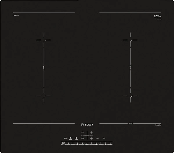 Варочная панель индукционная Bosch PVQ611FC5E с 4 независимыми конфорками располагает функцией PowerBoost, которая способствует ускорению, к примеру, процесса закипания жидкости. Технология MoveMode незаменима для изменения мощности нагрева путем простого передвижения посуды.