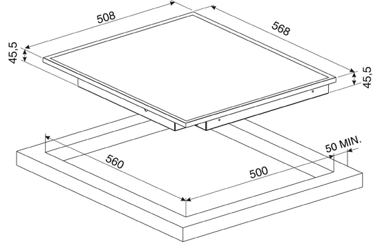 Стеклокерамическая варочная панель, рамка из отшлифованной нержавеющей стали, 60 см