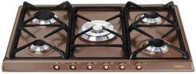 Варочная панель газовая Smeg SR775RA — оптимальное решение для кухонного интерьера в классическом стиле. Модель поддерживает системы автоматического электроподжига и газового контроля. Мощная центральная конфорка типа «Двойная корона», контуры пламени которой управляются раздельно, позволяет ускорить процесс приготовления пищи. Для размещения посуды доступны прочные чугунные решетки с шероховатой поверхностью. Держатели состоят из трех элементов, в том числе для удобного мытья. Панель управления занимает центральное положение. Размещение под углом обеспечивает дополнительный комфорт при эксплуатации, так как графическое обозначение находится в хорошей видимости.