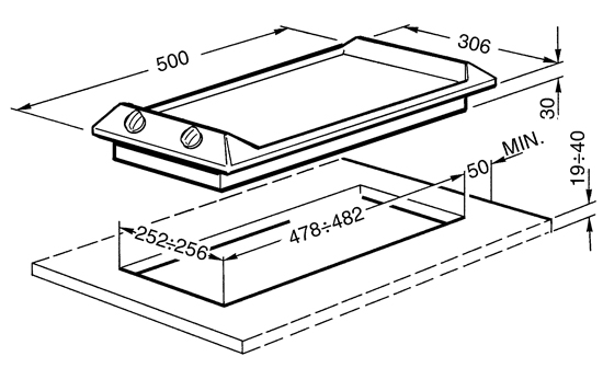 Газовая варочная панель, серия "Domino", фронтальное управление, решетка из чугуна, 30 см