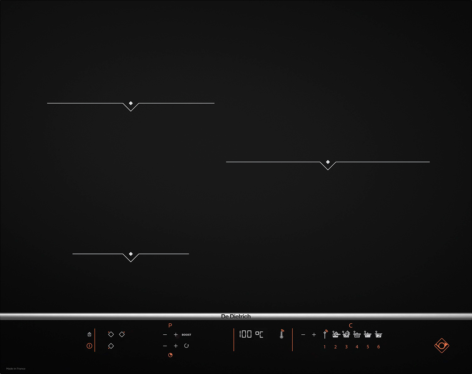 Индукционная технология De Dietrich достигает рекордных уровней мощности: от 2400 Вт до 3700 Вт для стандартных зон, от 3700 Вт и до 5000 Вт на зонах Ø 28 см и зонах horiZone. Зоны приготовления обеспечивают равномерный нагрев, они адаптированы для посуды разных форм и размеров: круглой или овальной, маленькой или большой.
