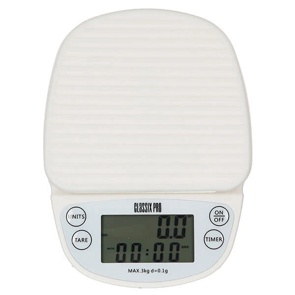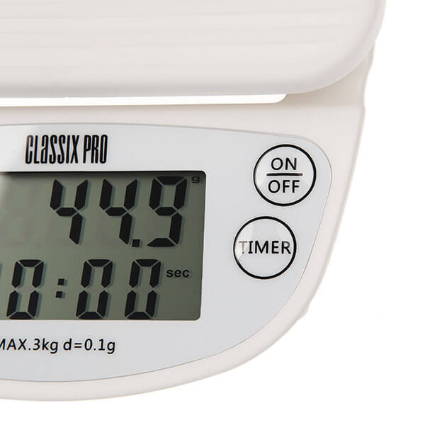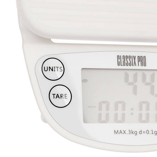Весы Classix Pro с таймером белые используют бариста в кофейнях и ценители кофе дома, чтобы точно следовать рецепту и получать стабильно вкусный кофе. Весы помогают точно измерить пропорции ингредиентов для приготовления напитков.
