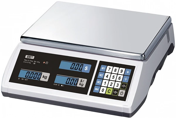 Весы торговые Cas ER JR-30CB LT со встроенным аккумулятором используются на предприятиях общественного питания и торговли для взвешивания/фасовки и расчета общей стоимости товара по цене за килограмм и измеренной массе.