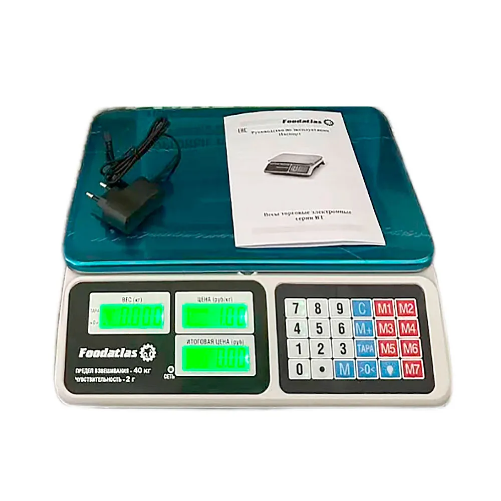 Торговые весы Foodatlas ВТ-40 – высокоточное электронное оборудование с диапазоном взвешивания от 2 г до 40 кг. Устройство используется в сегменте общепита и торговли: на рынке, в супермаркетах, продуктовых магазинах, кафе, ресторанах, столовых.