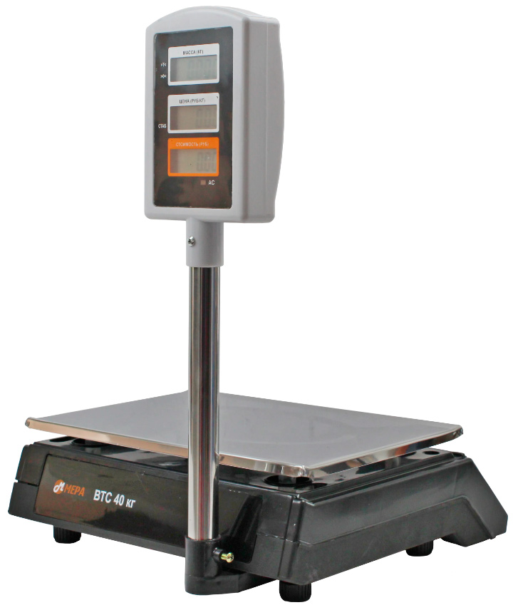 Весы торговые Мера ВТС 40 со стойкой подходят для работы в магазинах, супермаркетах, рынках и других предприятиях торговли или общепита.