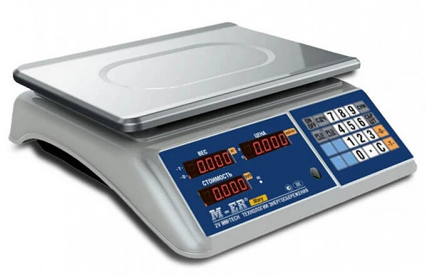 Дисплеи могут показывать массу товара, число единиц в партии, стоимость одного килограмма, сумму к оплате и сдачу.