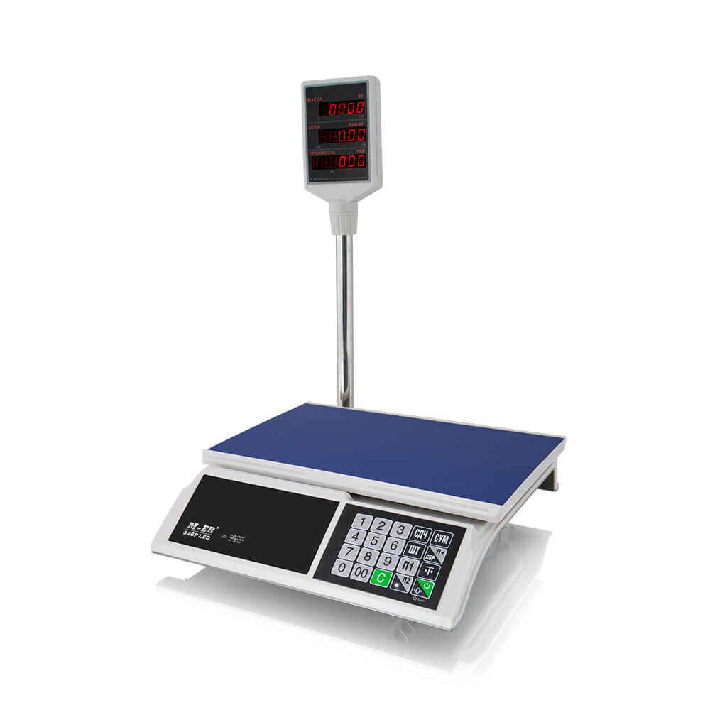 Торговые настольные весы M-ER 326 ACP-32.5 "Slim" LED Белые отличаются тонким корпусом. Это маленькие и легкие весы, которые удобно транспортировать. Они подходят для выездной торговли. Конструкция рассчитана на эксплуатацию в сложных условиях. В том числе, в павильонах без отопления или с тусклым освещением, а также на улице.