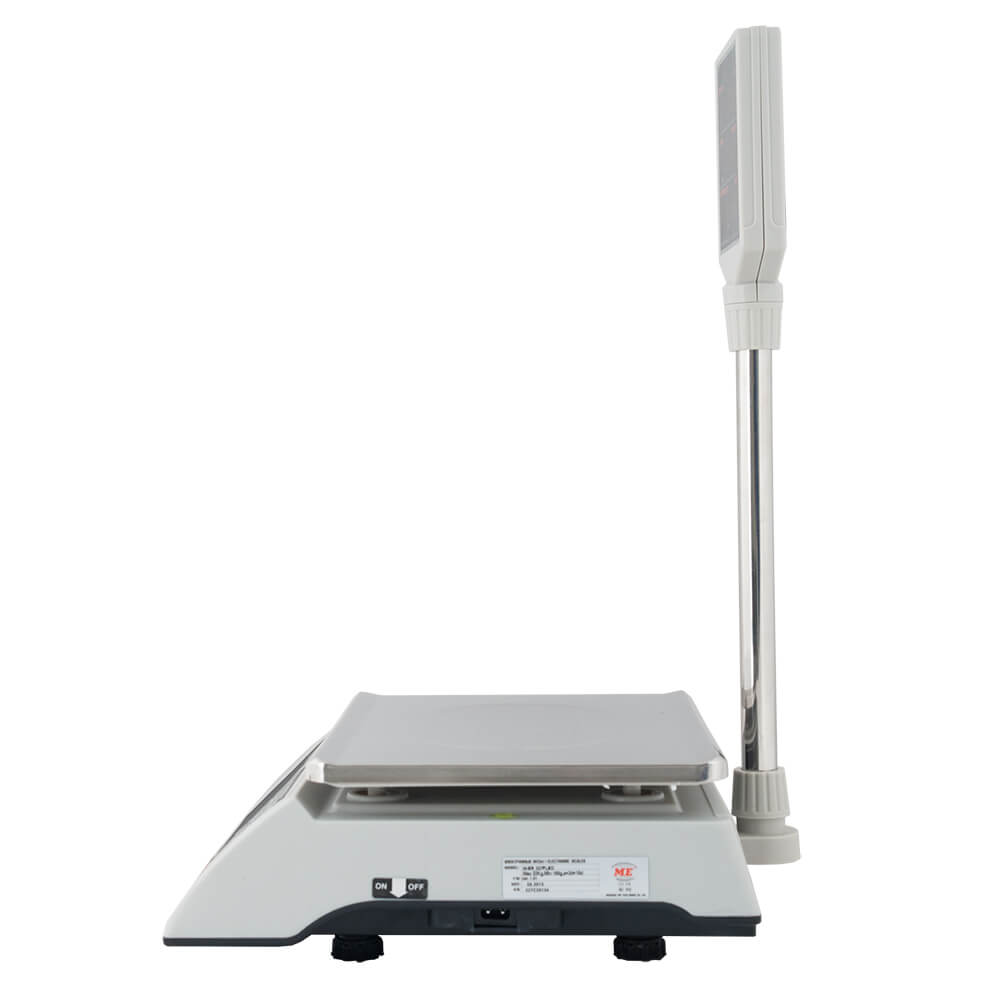 Маленькие настольные весы впишутся в любое пространство. Размеры корпуса: 300*385*600 мм (с учетом высоты стойки дисплея). Размер платформы: 325*230 мм. У платформы есть бортики, которые защищают электронику от жидкости. Это удобно при взвешивании мяса и рыбы.