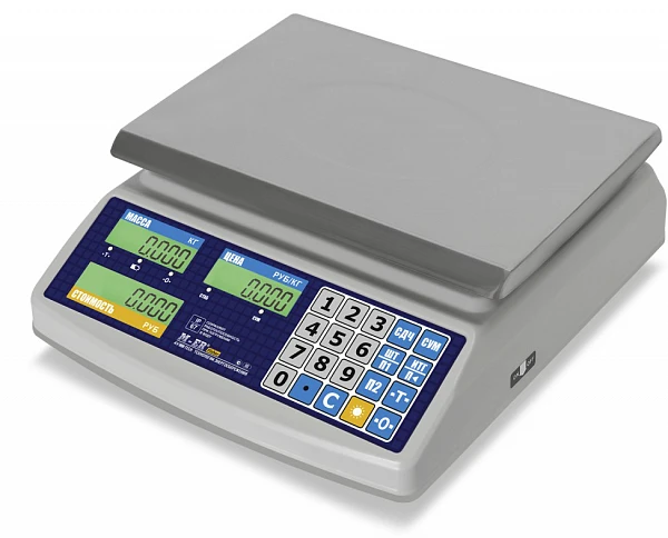 Результаты выводятся на два LCD-дисплея, расположенных на противоположных сторонах весов. Итоговые цифры хорошо видны и продавцу, и клиентам. На индикаторах «МАССА» И «ЦЕНА» предусмотрено 5 разрядов индикации, на индикаторе «СТОИМОСТЬ» - 6 разрядов. Размер индикаторов – 20*12 мм.