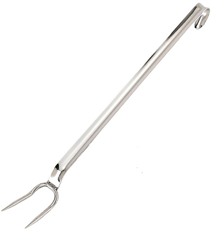 Вилка поварская De Buyer 3170.50 предназначена для выемки больших приготовленных кусков мяса, рыбы и птицы из посуды, а также для придерживания их при последующей разделке на предприятиях общественного питания и торговли. Изделие оснащено 2 зубцами и длинной ручкой с крючком на конце для удобного хранения.
