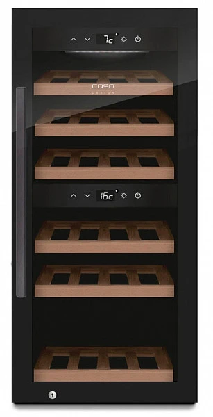 Винный шкаф Caso WineExclusive 24 Smart - двухзонный компрессорный винный холодильник, предназначенный для хранения вина в температурном диапазоне от 5 до 20°C.