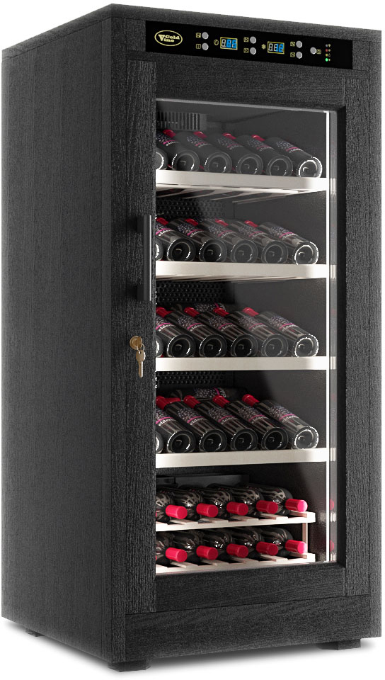 Винный шкаф монотемпературный Cold Vine C66-WB1M является стильным дополнением к вашему дому и прекрасным помощником в вопросе хранения вина. Объем данного шкафа составляет 200 литров, а это означает, что вы с легкостью можете разместить внутри него до 66 бутылок вина типа Бордо объемом по 0, 75 литра. Данная модель является отдельностоящей, а это означает что у вас появится не просто многофункциональный помощник, но также и стильное дополнение к вашему интерьеру. Данный винный шкаф не подразумевает разделения на зоны, соответственно, вы можете разместить в нем вина только одного типа. Температурный режим может быть выставлен любой в диапазоне от +5 до +22 ˚С. Уникальная опция линейки данных шкафов - наличие цифрового контроля влажности. Тип охлаждения - компрессорный. Корпус данного винного шкафа выполнен из натурального дерева черного цвета (шпон дуба). В базовой комплектации имеются деревянные выкатные полки в количестве 5 штук.