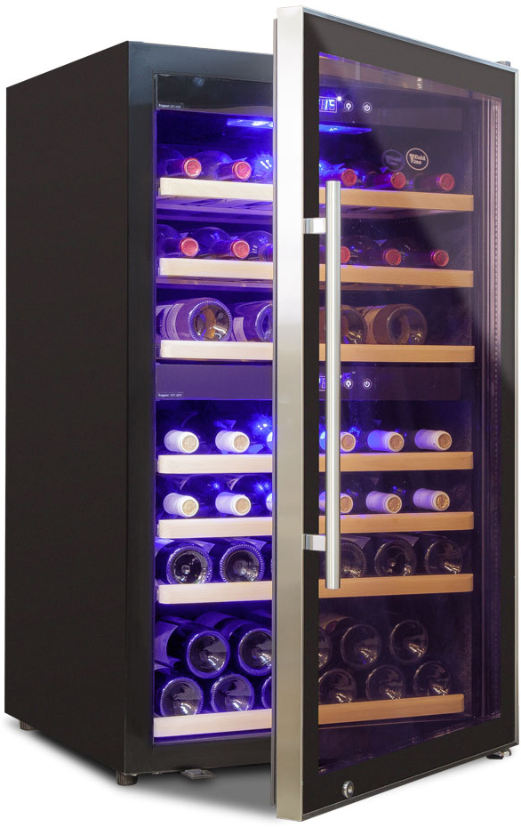 Винный шкаф Cold Vine C80-KBF2 – роскошная модель в сфере качественного хранения и дозревания вин! Благодаря современному продуманному дизайну, он шикарно вписывается в любой интерьер и пользуется большой популярностью как в ресторанном бизнесе, так и у винных коллекционеров. Наличие разных температурных зон позволяет помещать в него красные, белые и даже игристые вина.