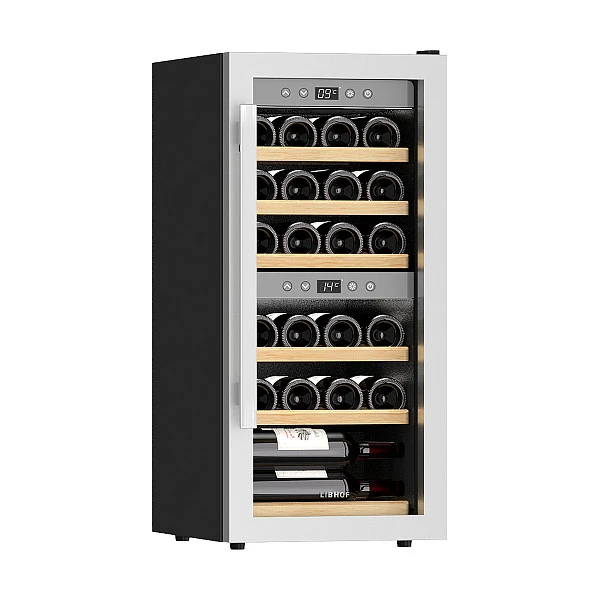 Винный шкаф двухзонный Libhof GQD-24 silver предназначен для хранения вина в оптимальных условиях (температура, влажность, защита от УФ излучения, вибраций и т. д.).