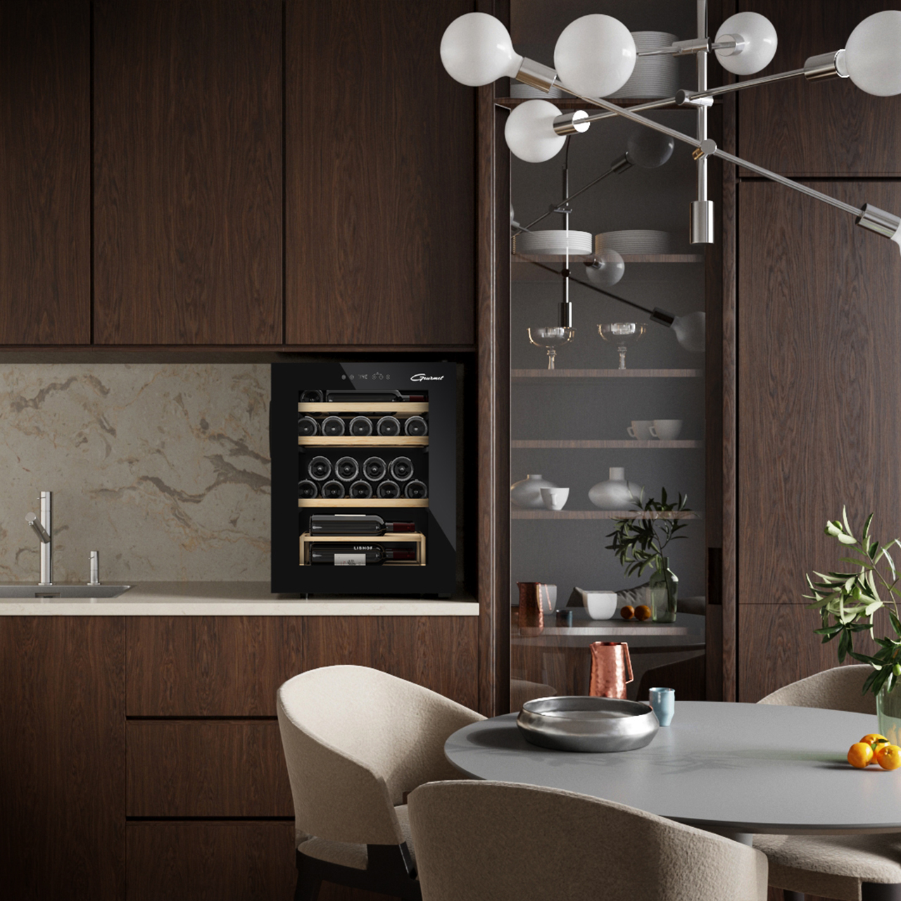 Каждая деталь винного холодильника удачно дополняет друг друга, делая шкаф подходящим под любой стиль интерьера.
