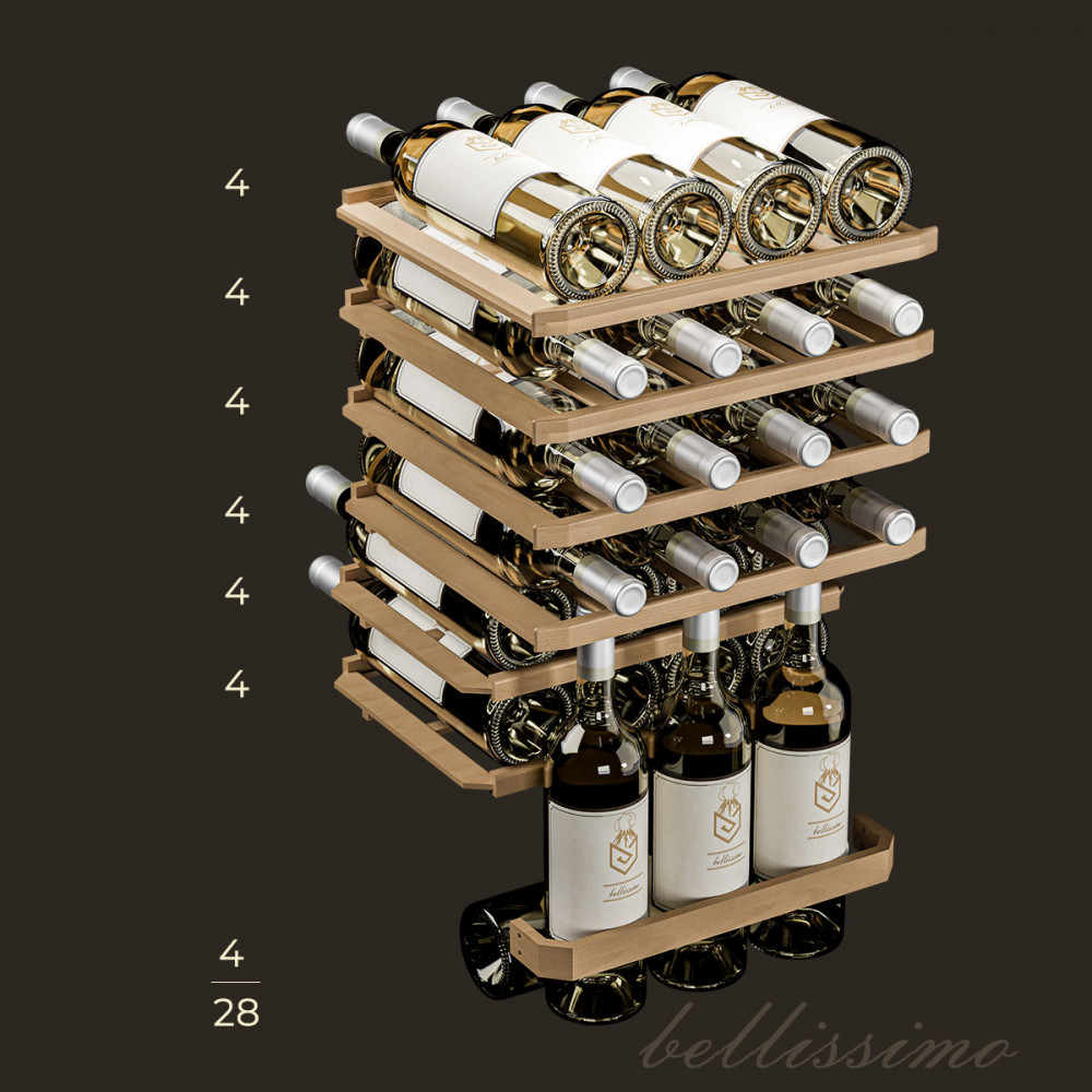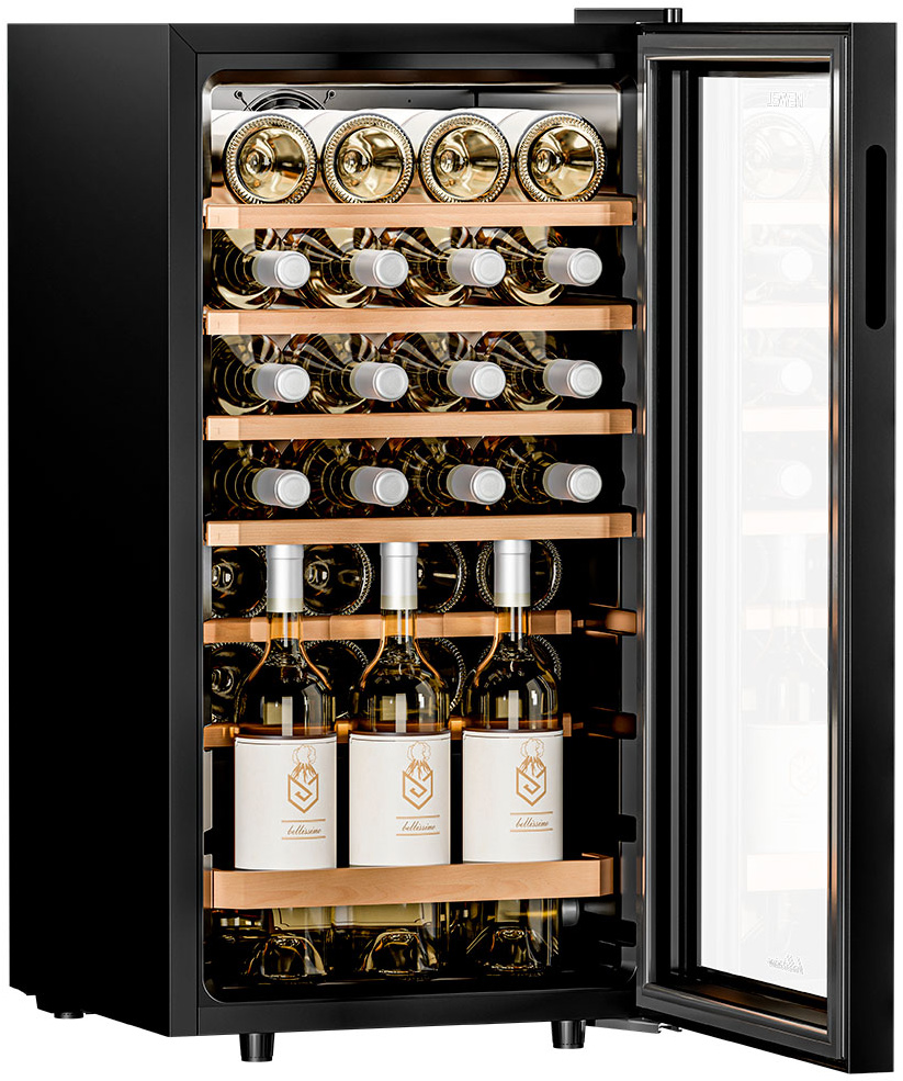 Компрессорная отдельностоящая модель вмещает до 28 бутылок и создает условия для правильного хранения и элегантной демонстрации винной коллекции.