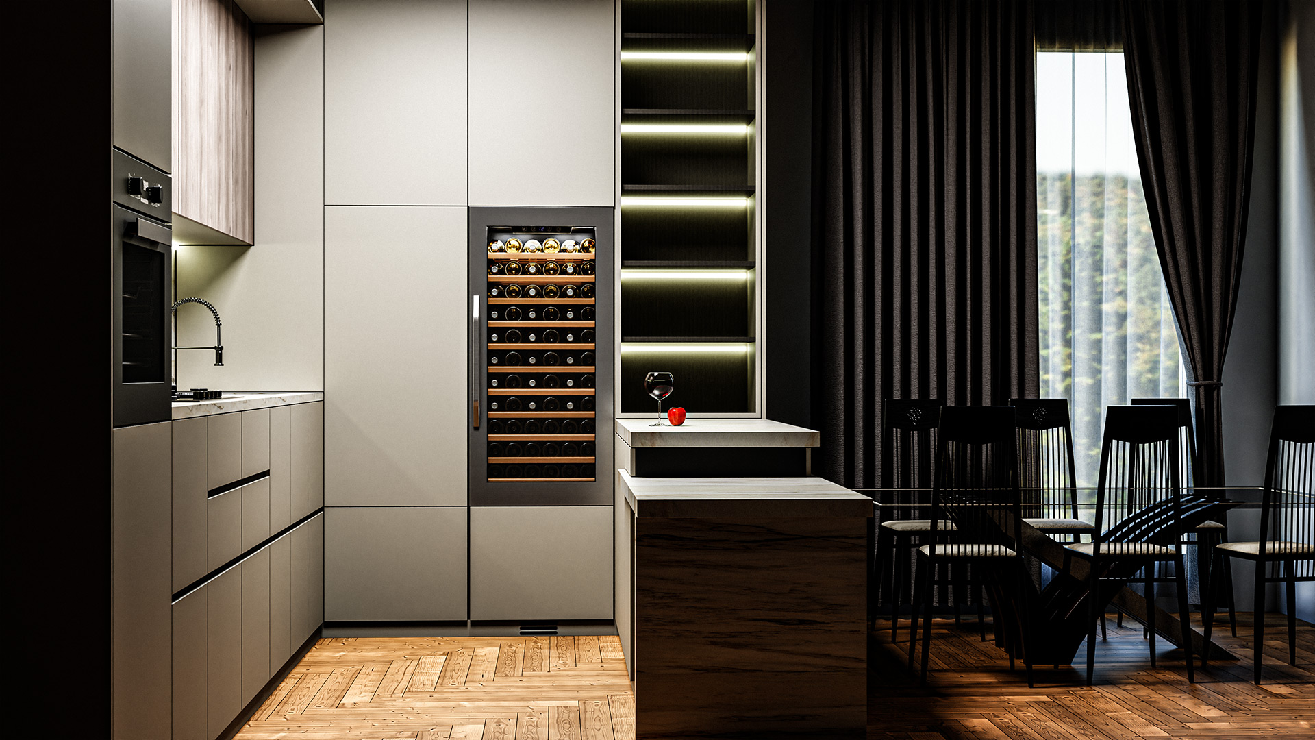 Встраиваемый винный холодильник оснащен дверью с защитой от ультрафиолетовых лучей и отлично подойдет для хранения и созревания различных сортов вин. Динамическая система охлаждения обеспечивает оптимальную температуру для вина и сохраняет необходимую влажность внутри камеры.