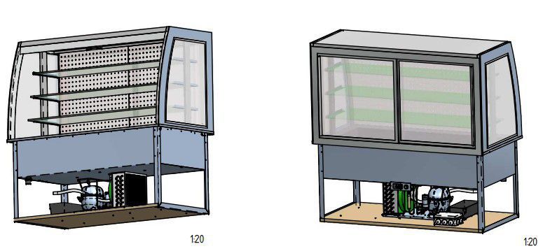 Сторона клиента может быть открытой с ночной шторкой, или закрытой (опция: навесные дверцы для полок или глухое гнутое стекло)