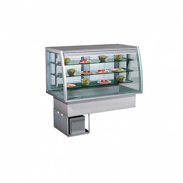 Охлаждаемая встраиваемая вентилируемая витрина из нержавеющей стали Aisi 304 для демонстрации холодных блюд.