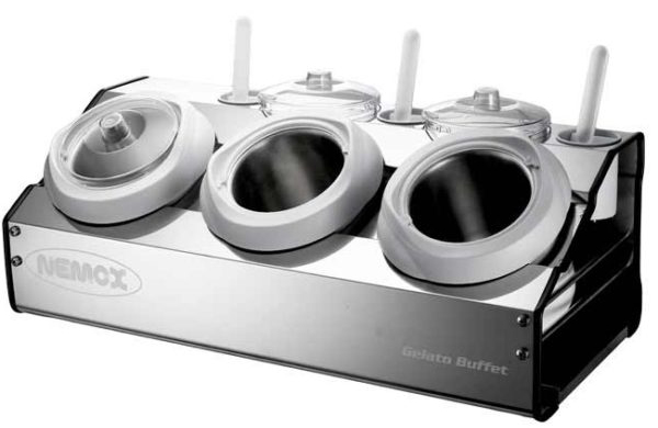 Сердцем Fantasia Buffet является его двустенные контейнеры, они герметизированные. В полости контейнера находится особый жидкий разработанный Nemox препарат, емкости предварительно необходимо заморозить в морозильнике в течение 8-12 часов, чаши аккамулируют холод и будут постепенно его "отдавать" в течение более 2-х часов. Мороженое будет сохранять, за это время, среднюю температуру - 12 ° С.