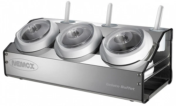Витрина для мороженого Nemox Fantasia buffet - уникальная, эксклюзивная, блестящая система для хранения мороженого и сорбета более двух часов с поддержанием оптимальной температуры без подключения к электричеству. Стильная, Удобная, Мобильная.