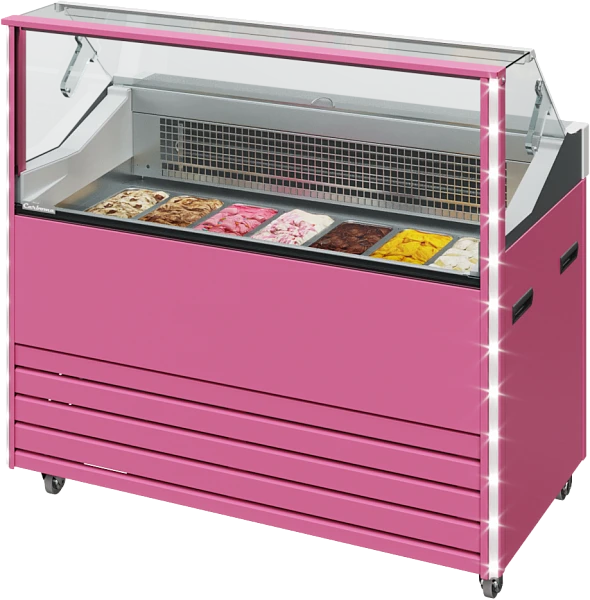 Витрина для мороженого Полюс IC72 SL 1,3-1 индивидуальное исполнение поддерживает температурный режим продукта до -25 град С при температуре окружающей среды +30 град С и относительной влажности 55% (4 климатический класс).Статическая система охлаждения позволяет избежать заветривания и засыхания продукта, способствует сохранению вкусовых качеств мороженого.