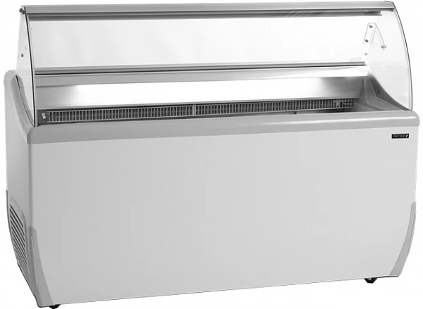 Камера оборудована горизонтальными сдвигающимися стеклянными крышками, что практично, если она не используется. Это также позволяет экономить электроэнергию. Наклонное стеклянное ограждение защищает мороженое и улучшает санитарно-гигиенические условия.