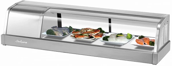 Настольная холодильная витрина Turbo Air Sakura-50-L (левое расположение агрегата) предназначена для кратковременного хранения популярных японских блюд, таких как суши, сашими, роллы и др.