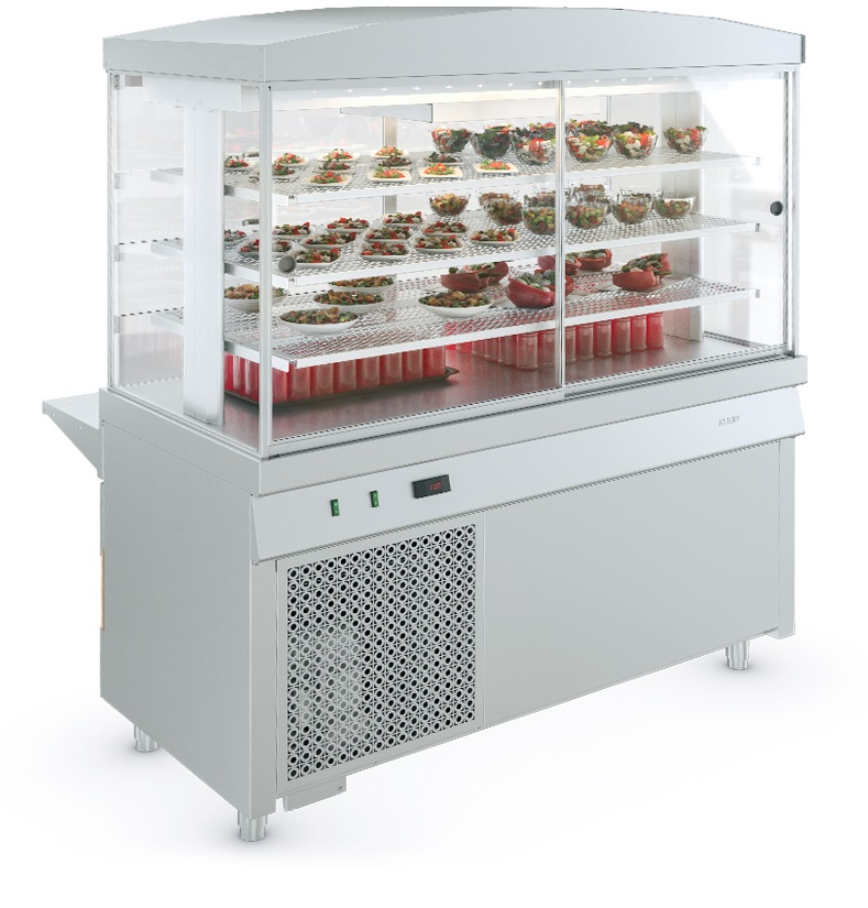 Витрина холодильная Atesy Ривьера ХВ-1200-02 предназначена для кратковременного хранения, демонстрации и раздачи холодных напитков, салатов, кисломолочных продуктов и других блюд, требующих хранения в охлажденном состоянии.