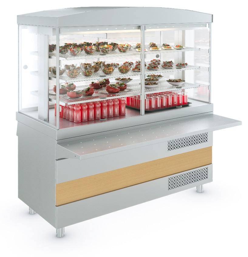 Охлаждение объема витрины осуществляется эффективной динамической системой, оснащенной мощным вентилятором.