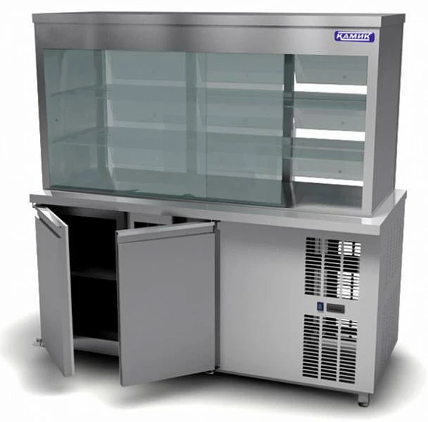 Витрина для холодных блюд Камик ВХ-15070 используется на предприятиях общественного питания и торговли для охлаждения, демонстрации и кратковременного хранения продуктов питания и готовых блюд.