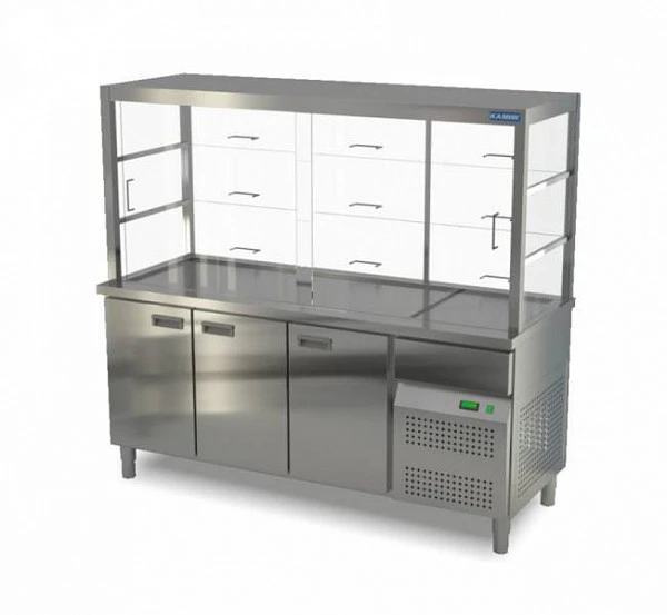 Витрина для холодных блюд Камик ВХ-18070 используется на предприятиях общественного питания и торговли для охлаждения, демонстрации и кратковременного хранения продуктов питания и готовых блюд.