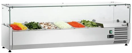 Холодильная витрина Bartscher GL4 7*1/4 GN предназначена для демонстрации, охлаждения и кратковременного хранения салатов, десертов и скоропортящихся продуктов на предприятиях общественного питания и торговли.