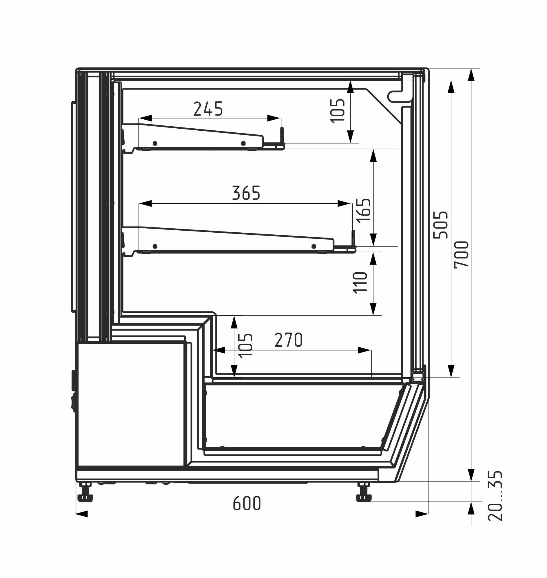 Глубина выкладки: 270 (365, 245 полки-решетки)
