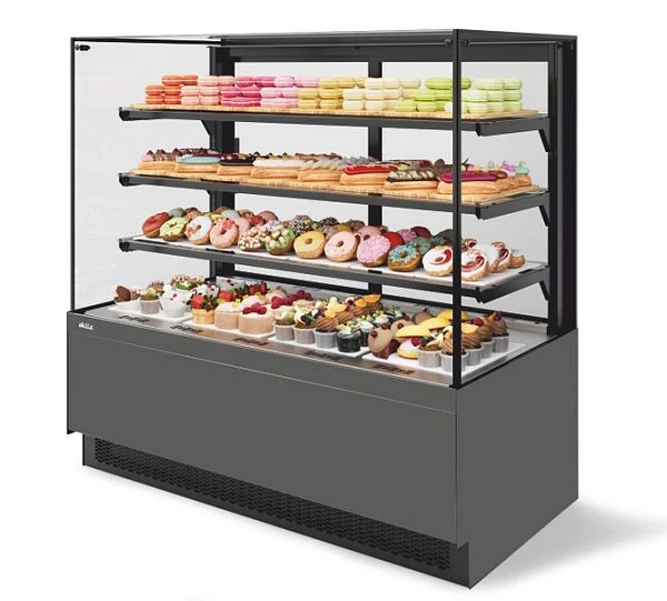 Витрина кондитерская Chilz Vete II kub 130, Антрацит/Серый матовый - обновленная линейка кубических витрин Chilz Vete Kub. Предназначена для демонстрации товаров и обеспечения удобства в магазинах различных форматов. Это идеальное решение для точек общественного питания и магазинов, специализирующихся на продаже кондитерских изделий.