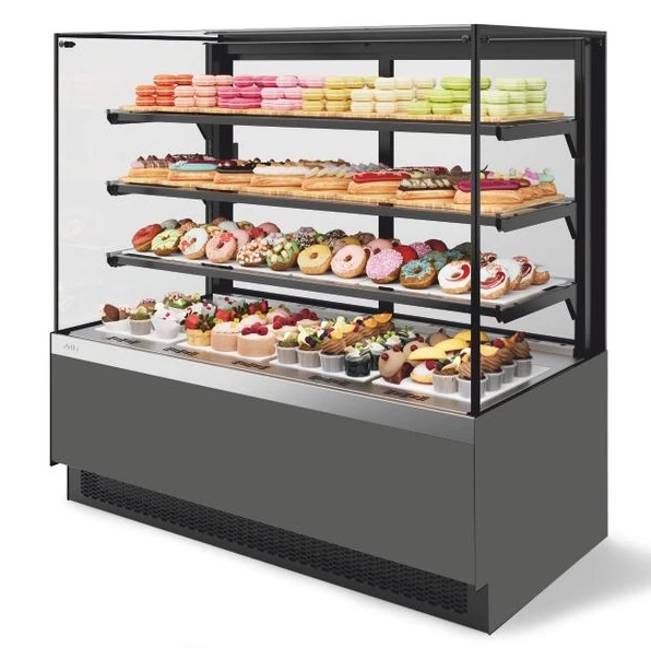 Витрина кондитерская Chilz Vete II kub 90, Серый матовый/Шлифованная нержавейка - обновленная линейка кубических витрин Chilz Vete Kub. Предназначена для демонстрации товаров и обеспечения удобства в магазинах различных форматов. Это идеальное решение для точек общественного питания и магазинов, специализирующихся на продаже кондитерских изделий.