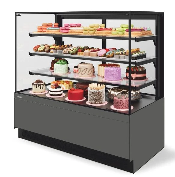 Витрина кондитерская Chilz Vete II kub lux 90, Антрацит/Серый матовый – оборудование из обновленной серии кондитерских витрин VETE KUB.. Предназначена для самообслуживания, без переднего стекла. Это идеальное решение для точек общественного питания и магазинов, специализирующихся на продаже кондитерских изделий.