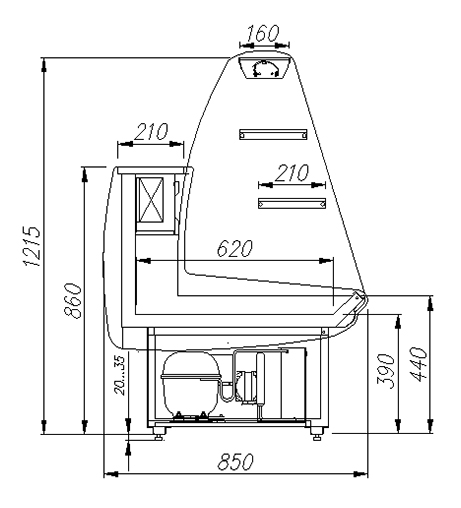 Витрина Полюс предназначена для эксплуатации в закрытом помещении с естественной вентиляцией при температуре окружающей среды от +12 до +25 и относительной влажности не более 60%.