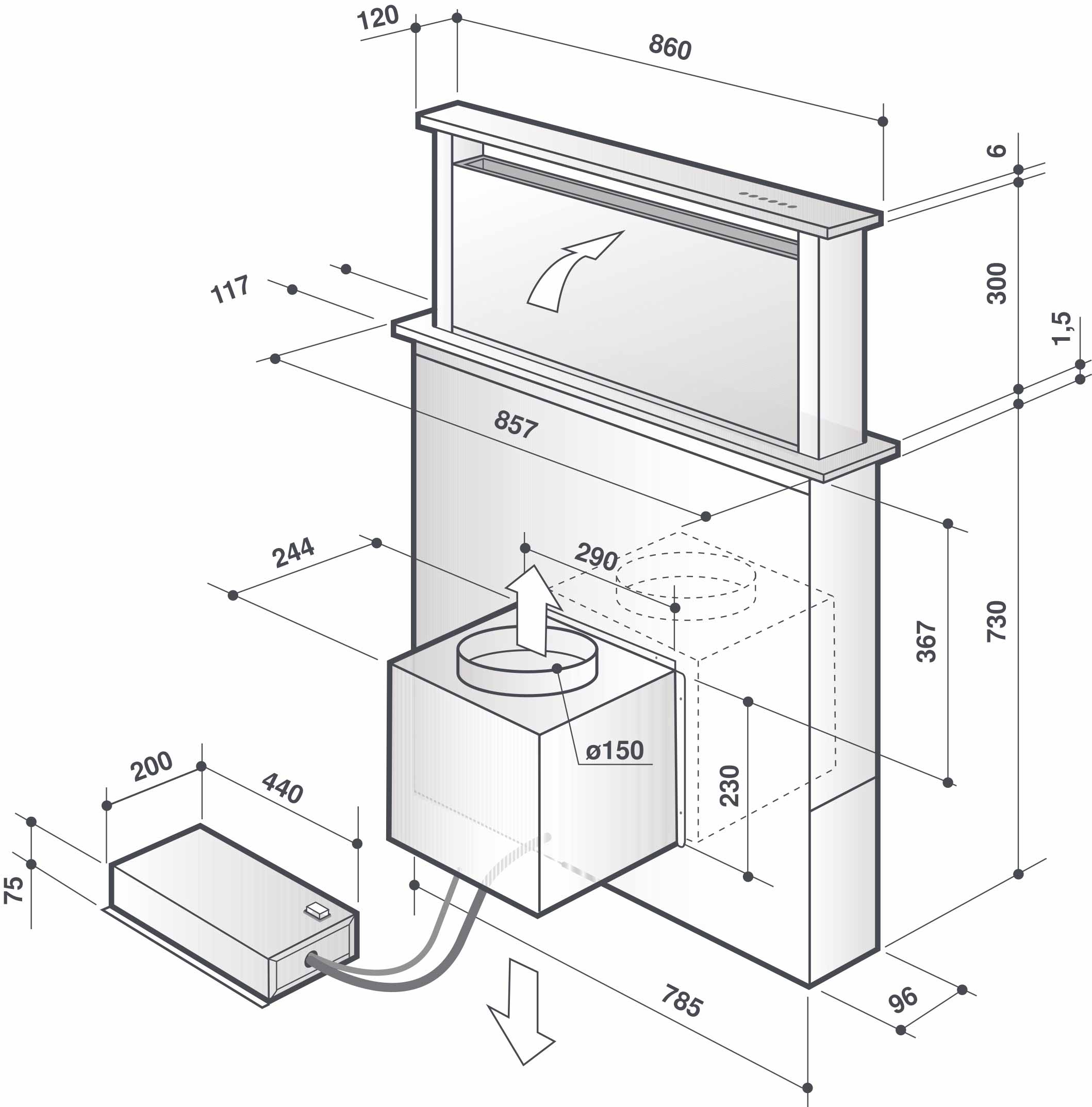 Встраиваемая вытяжка De Dietrich DHD7961B предназначена для очищения воздуха от дыма, запахов, испарений, продуктов сгорания и прочих примесей, образующихся в процессе готовки продуктов.