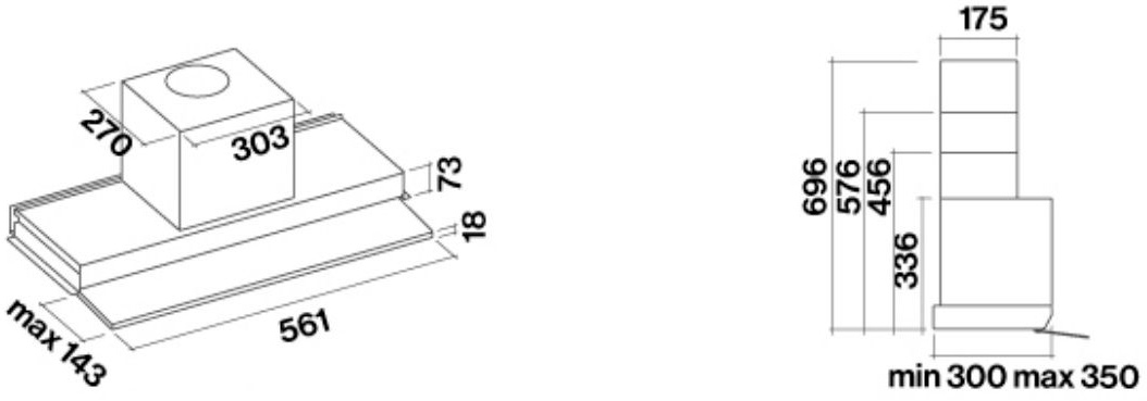 Стеклянная полка и настенный воздуховод приобретаются дополнительно.